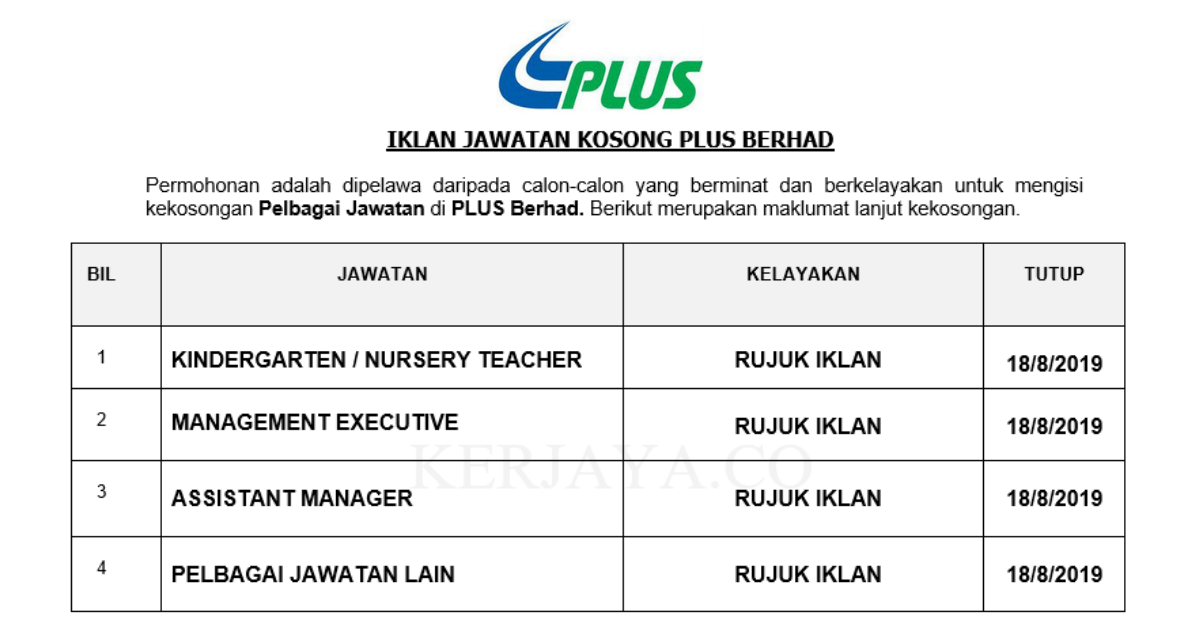 Jawatan Kosong di PLUS Berhad - JOBCARI.COM | JAWATAN KOSONG …